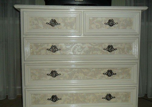 Для винтажных и молодежных интерьеров предлагаются комоды с состаренными поверхностями, на которых нанесены стильные рисунки и надписи. Особым аристократизмом отличаются дизайнерские комоды «под старину» - с изогнутыми формами, окраской под красное дерево и золотой росписью на поверхностях.