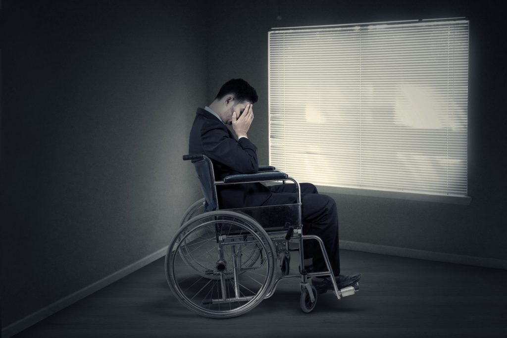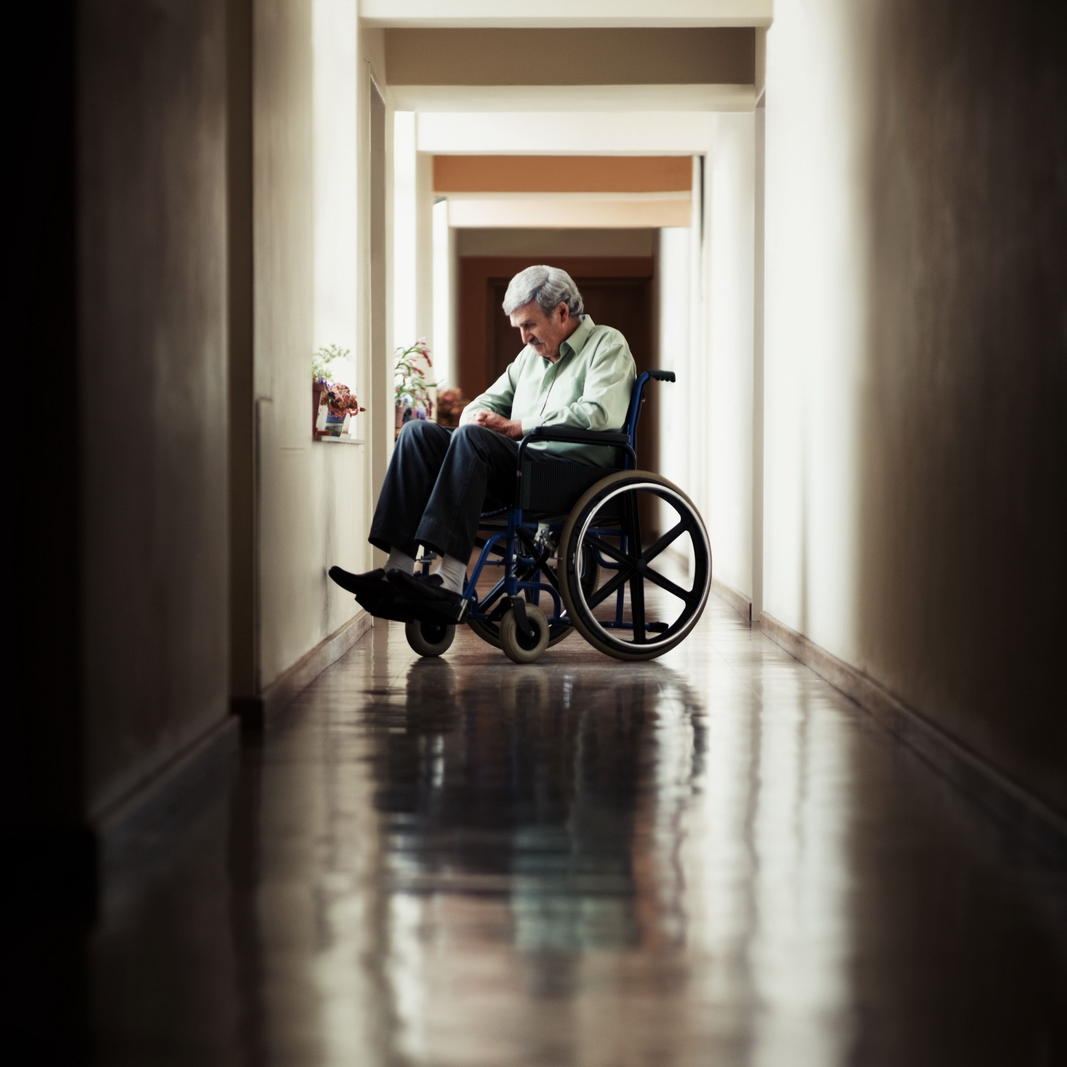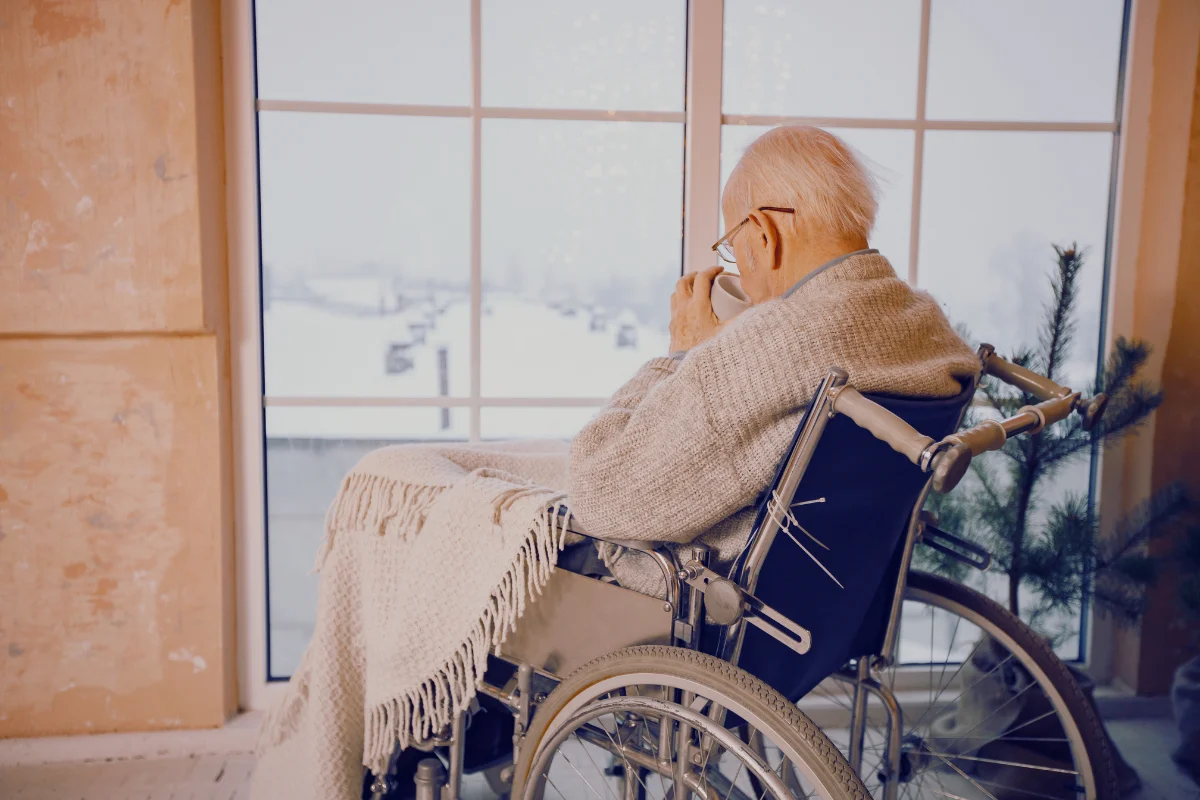 Старый инвалид сидя