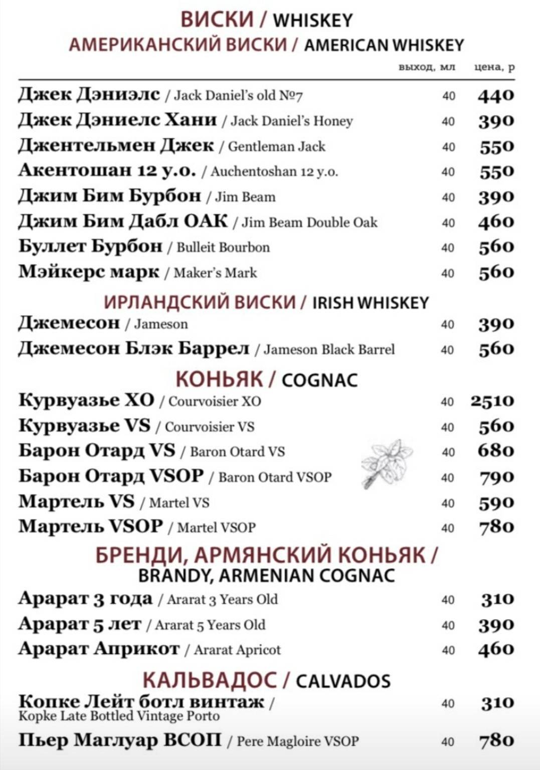 Старый колодец меню