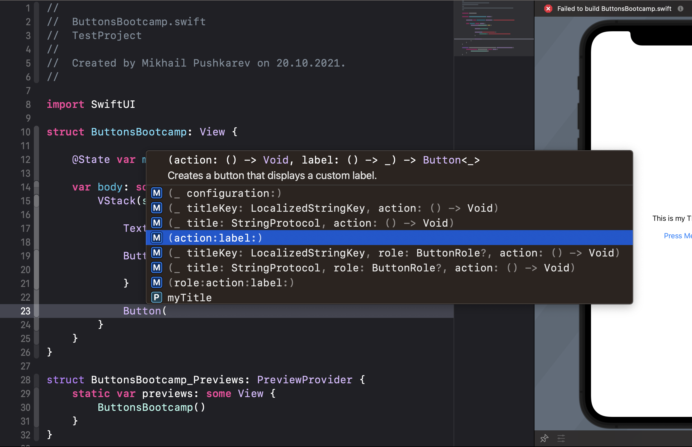 В action: ( ) → Void - реализация кнопки