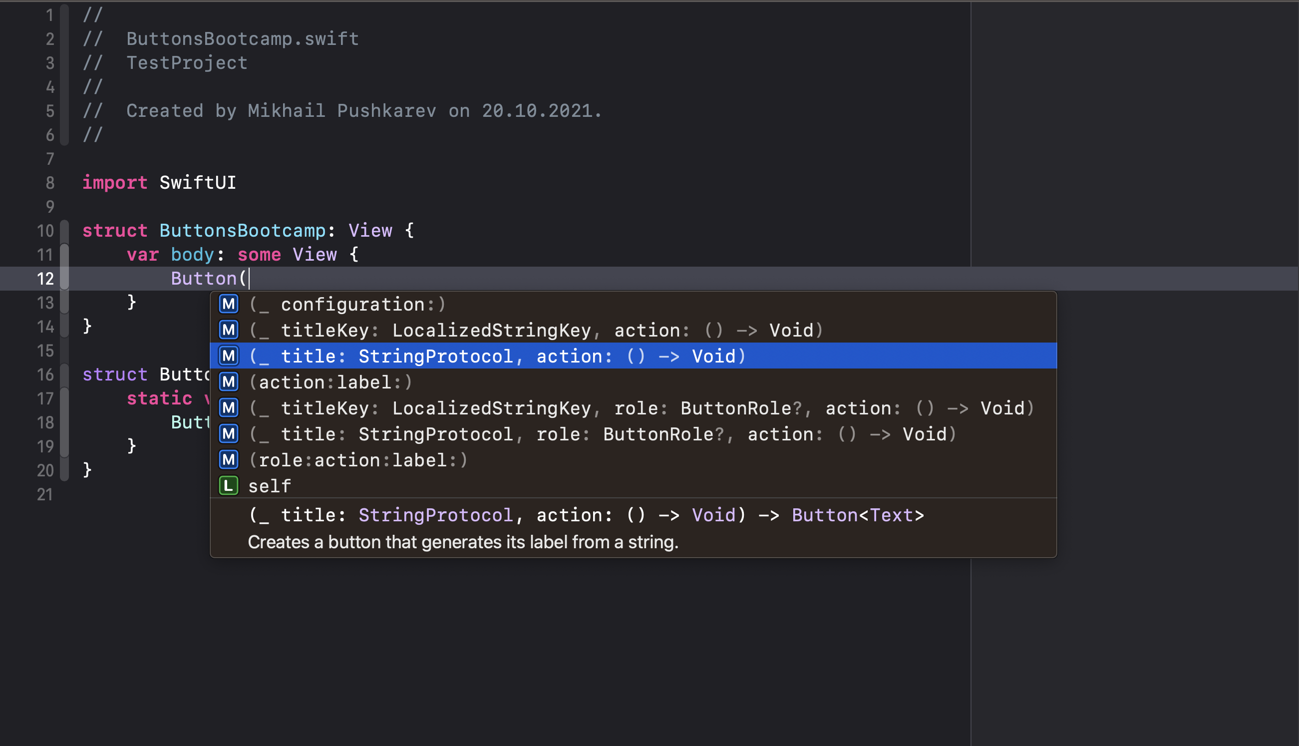 Давай теперь более подробно поговорим о Button. Разберем две реализации. С остальными познакомься в документации и дополнительных материалах. Первая, эта та что была на видео.