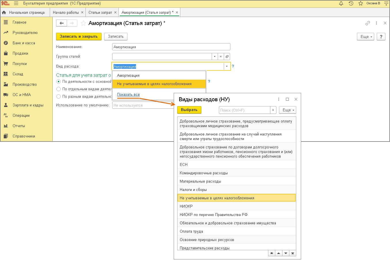 Статьи затрат в 1с 8 110 фото