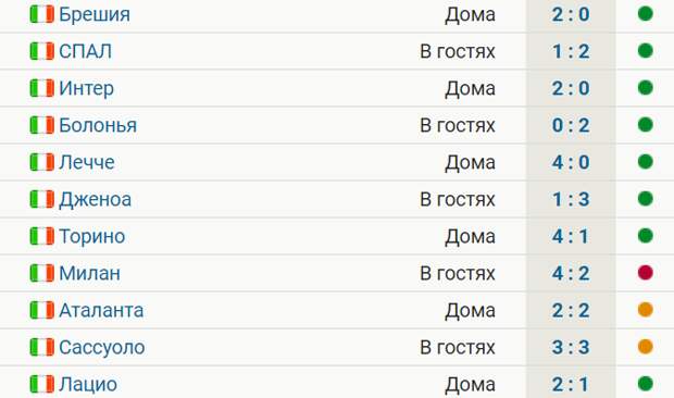 Статистика футбольных команд италии