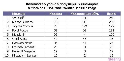 Статистика по угонам в москве