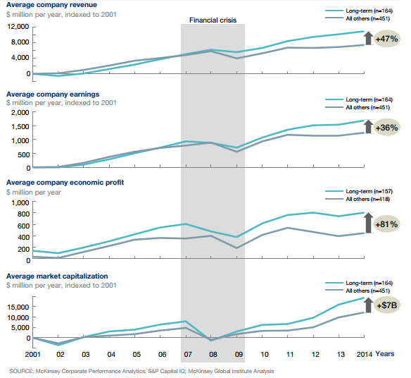 Статья посвящена исследованию, сравнивавшему успехи компаний, имеющих краткосрочную ориентацию, и всех прочих.