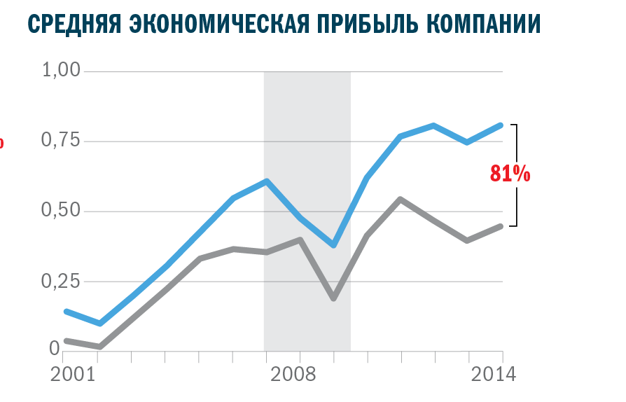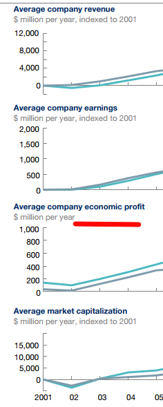 Я определенно не специалист в экономике, как авторы HBR :-), но по-видимому приводить к курсу экономическую прибыль не следует. Если среди читателей есть те, кто в этом понимает, буду рад выслушать комментарии.
