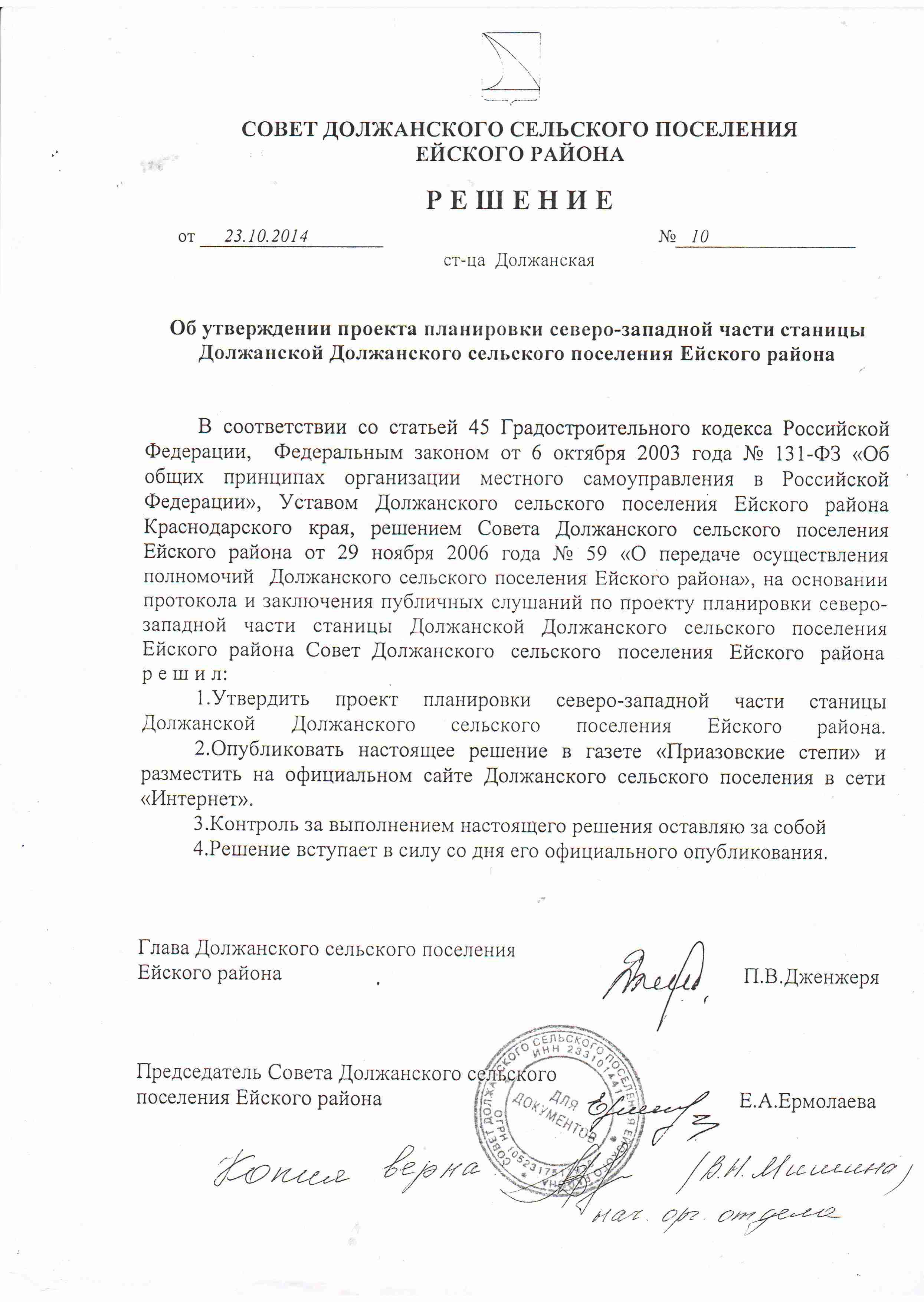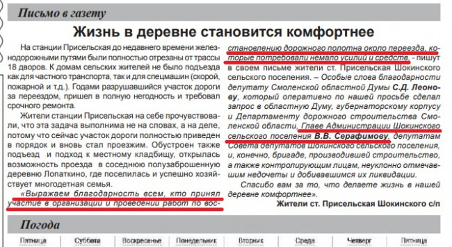 Статья о главе поселения