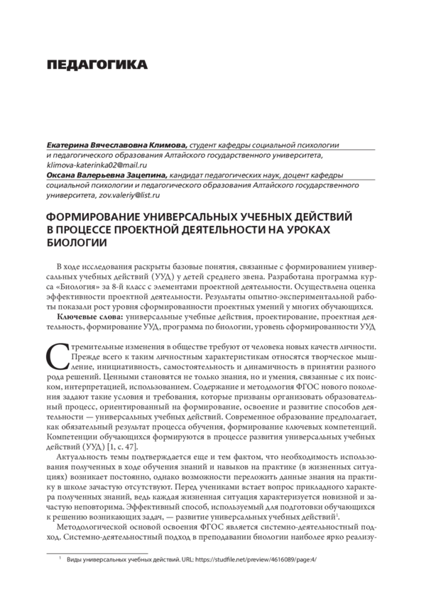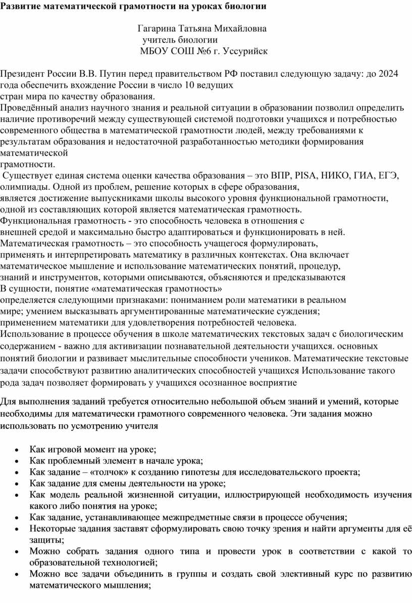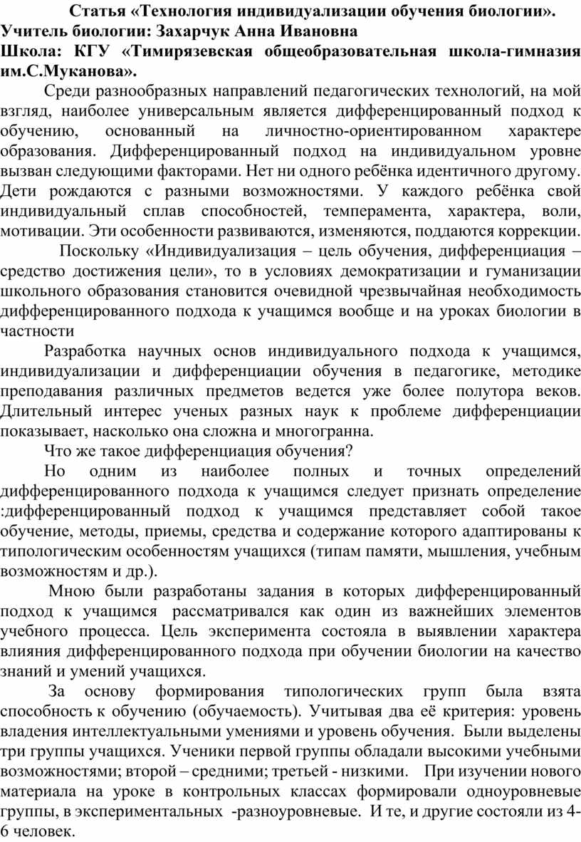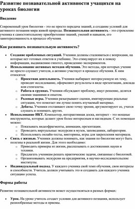 Статья уроки биологии
