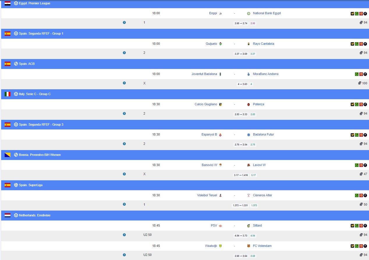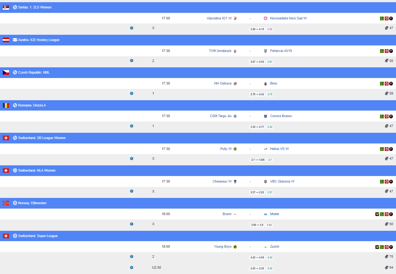 Ставки на сегодня. (Там где в баскетболе и волейболе "X" - на самом деле ставка на П2). Недоработали немного софт.