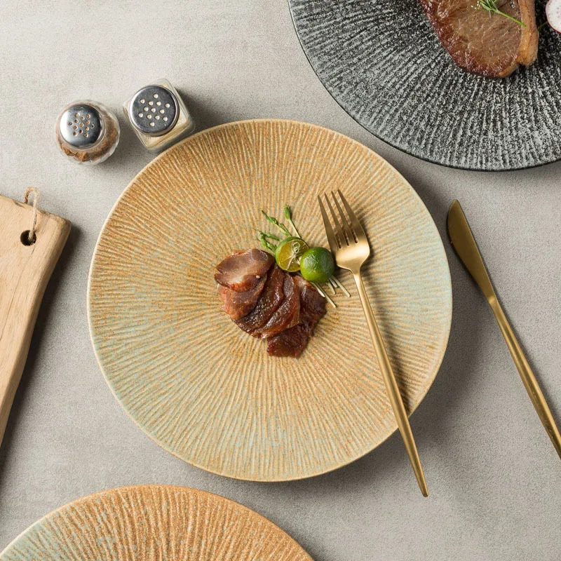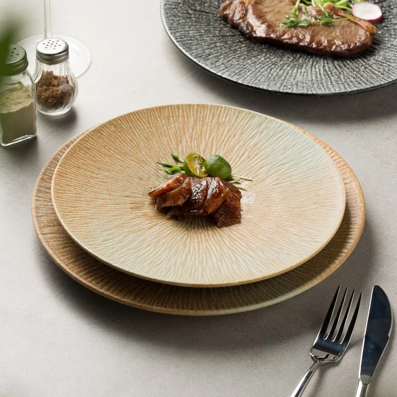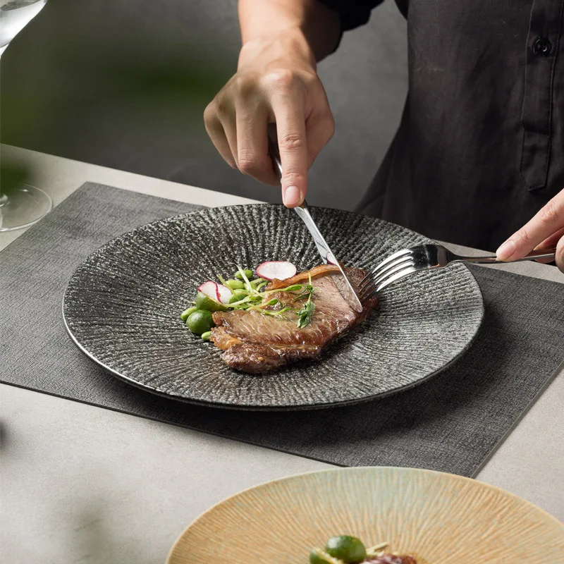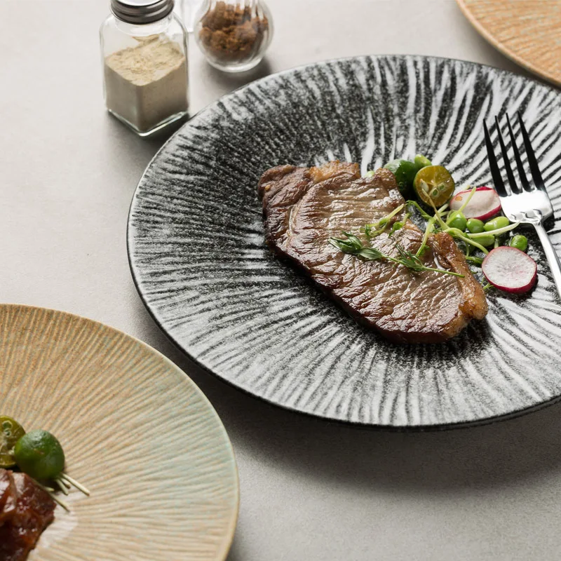 aKYyQlboMHere you can buy Steak Plate Japanese Style Tableware Sashimi Shallow Plate Sushi Plate Dish Western Restaurant Flat Plate Water Pattern Plate with free delivery to your post office.