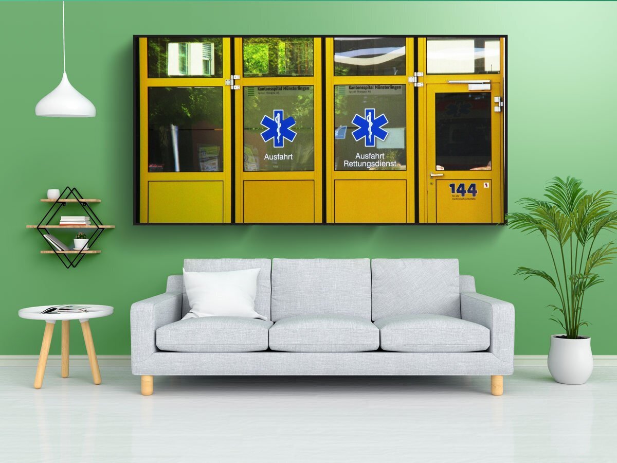 Стекло двери желтое