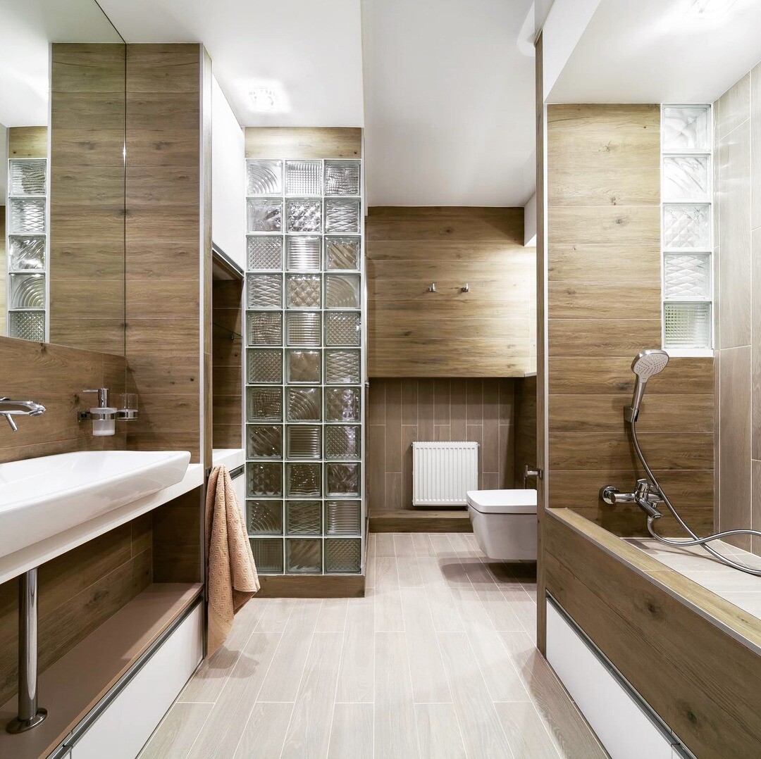 Стеклянная плитка: 50+ фото в интерьере, идеи для ванной и . . .