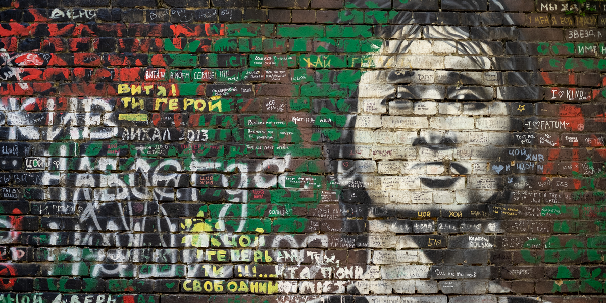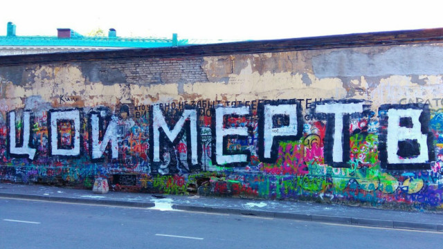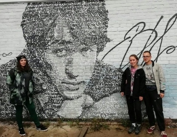Поклонники творчества музыканта Виктора Цоя исписали стену цитатами из песен . Стена пользуется популярностью у туристов и молодёжи . Удивительно, ведь на песнях Цоя выросло более старшее поколение, неужели они ещё пишут на стенах?