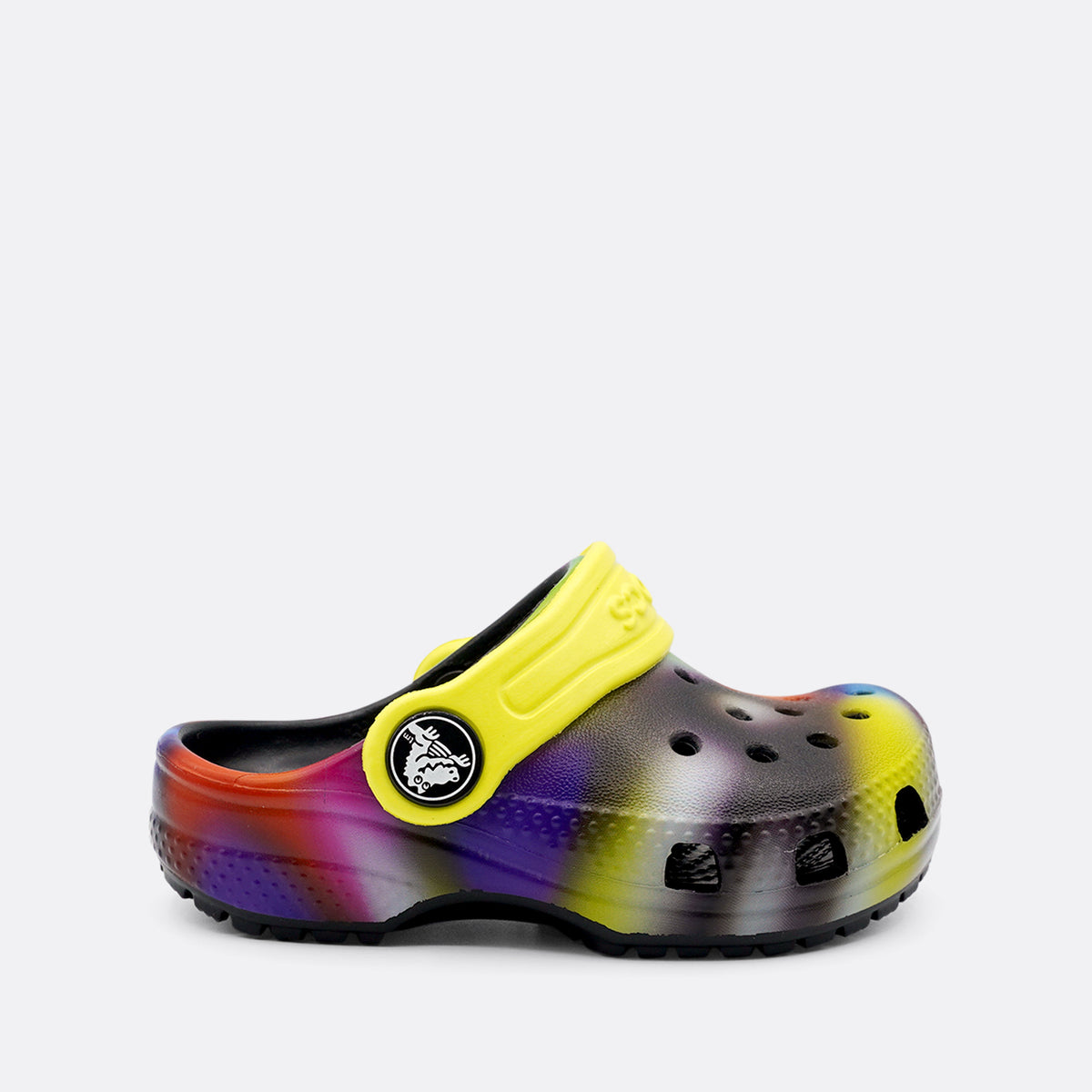 Step into a world of color with the Crocs Kids Solarized Print. This pair features a dynamic, swirling pattern that is sure to catch the eye. Perfect for kids who love to stand out, these Crocs are not just stylish but also incredibly comfortable. The lightweight, cushioned sole provides all-day support, making them ideal for active little ones.