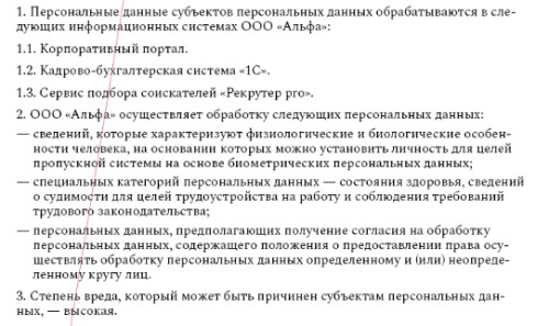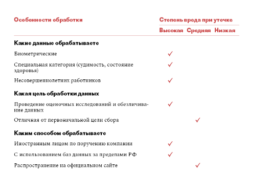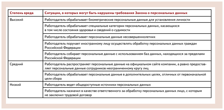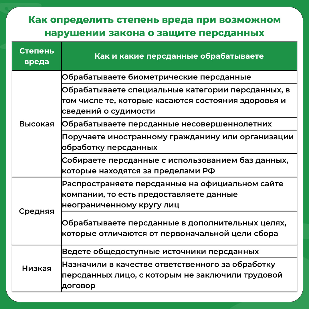 Степень вреда персональных данных