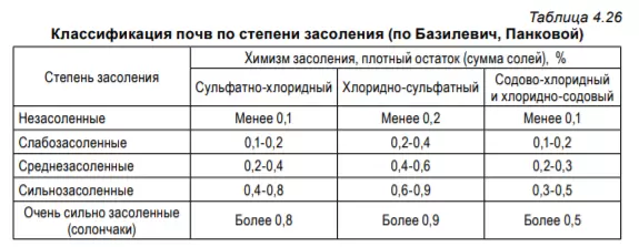 Степень засоления почв