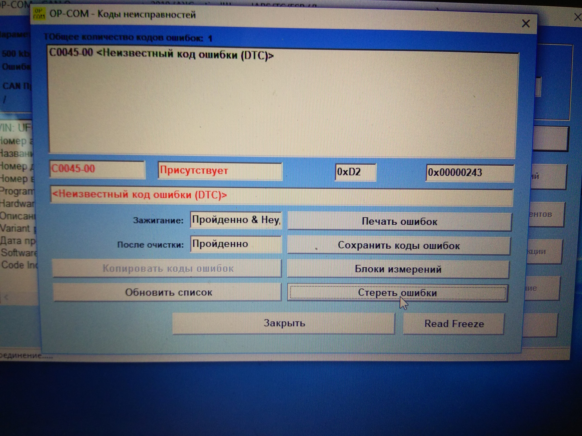 Стереть ошибку абс