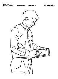 Si hubiéramos prestado atención a las solicitudes de patentes estadounidenses, habríamos advertido una con el código D504889, que Apple presentó en marzo de 2004 y que se registró catorce meses más tarde. Como inventores de la patente aparecían Jobs e Ive. La solicitud incluía los bocetos de una tableta electrónica rectangular con los bordes redondeados —el aspecto exacto que acabó teniendo el iPad—, entre los que se incluía el esbozo de un hombre que sujetaba el aparato tranquilamente con la mano izquierda mientras usaba el índice derecho para tocar la pantalla.