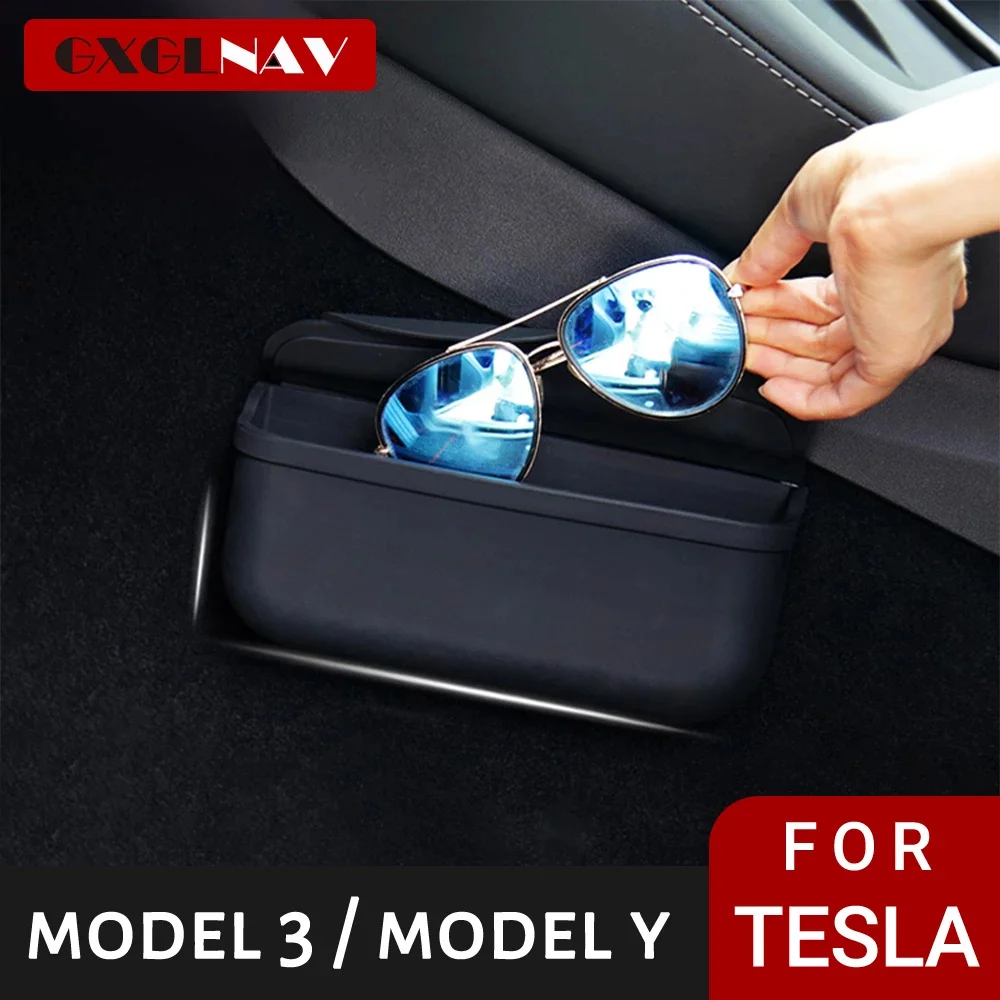 Sticky TPE Glasses Case Storage Box For Tesla Model 3 Model Y Sunglasses Box Interior Bill Card Storage Box Sunshade - Купить с бесплатной доставкой