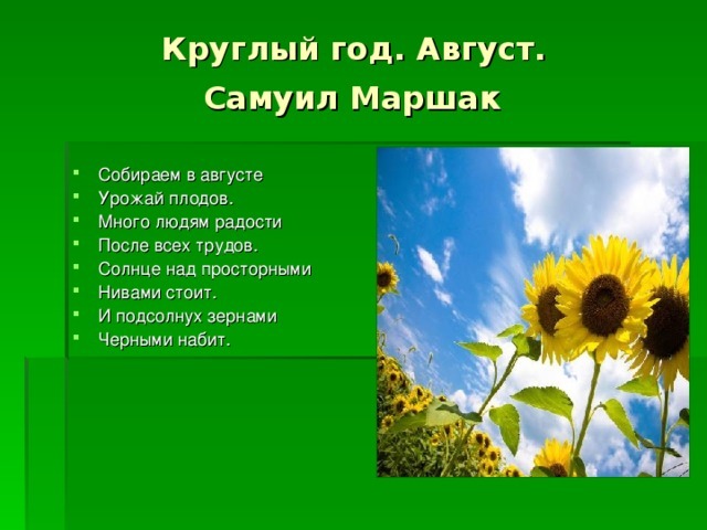 Стих подсолнух для детей