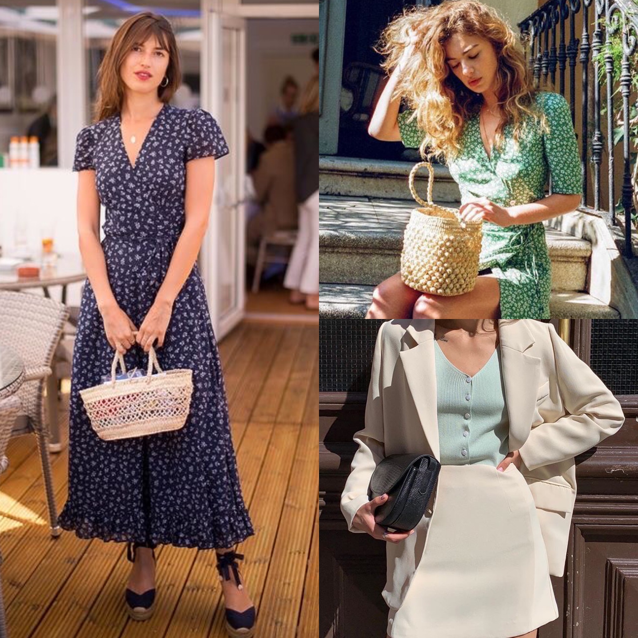 В сумочном гардеробе преобладают плетённые модели, сумки с которой ручкой или через плечё, а также сумки-ведерки.