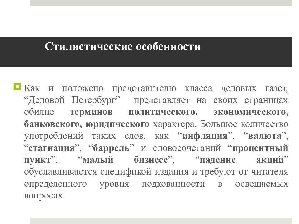 Стилевые особенности произведений
