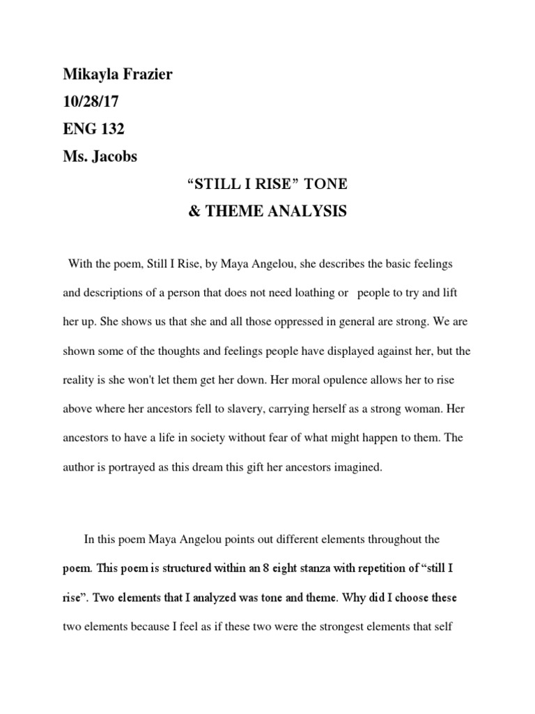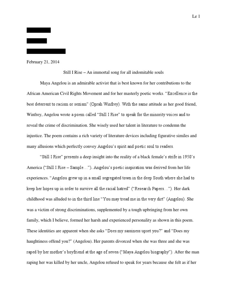 Still I Rise by Maya Angelou Literary Analysis Essay . . .
