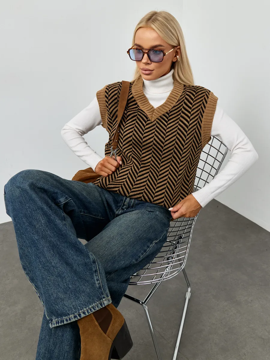 Стильные Вязаные Жилеты Фото 85 фото