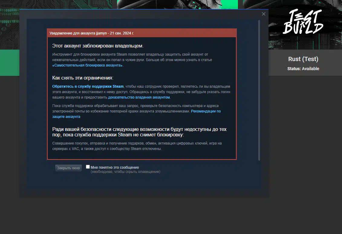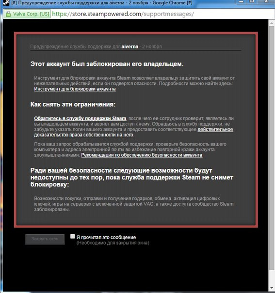Стим будет заблокирован