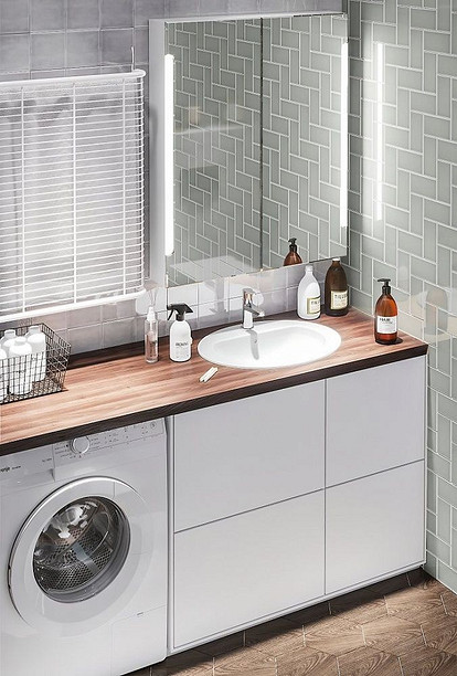 Стиральная машинка с использованием столешницы под раковину — дизайн и фото . . . . Тип крышки с раковиной под стиральную машину зависит от количества свободного пространства ванной комнаты . . .