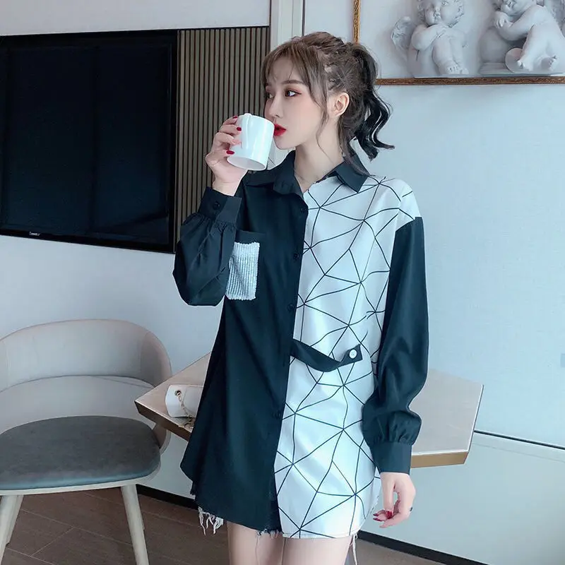 FeckrLywLooked for Stitching Shirt Women's Long-sleeved Spring and Autumn Loose Large Size Western Style Mid-length Printed Chiffon Shirt for a long time, but could not find it? Bring to your attention Stitching Shirt Women's Long-sleeved Spring and Autumn Loose Large Size Western Style Mid-length Printed Chiffon Shirt with the best price!