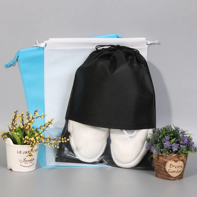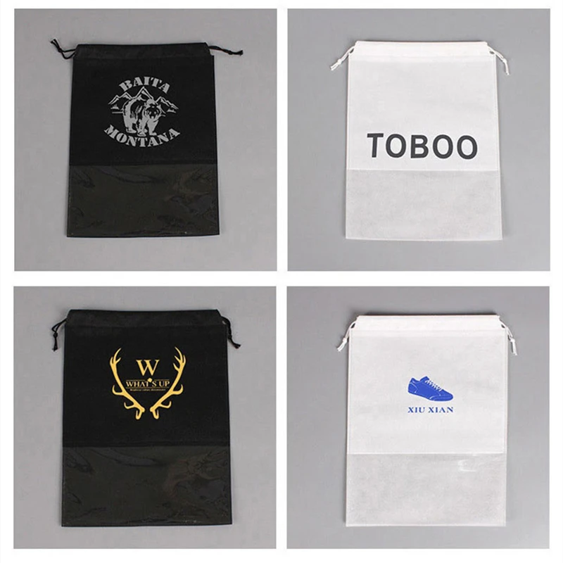 StoBag 25pcs Non-woven Shoes Storage Drawstring Bags Window Dustproof Waterproof Packaging Reusable Travel Portable Pouches Logo - Купить с бесплатной доставкой
