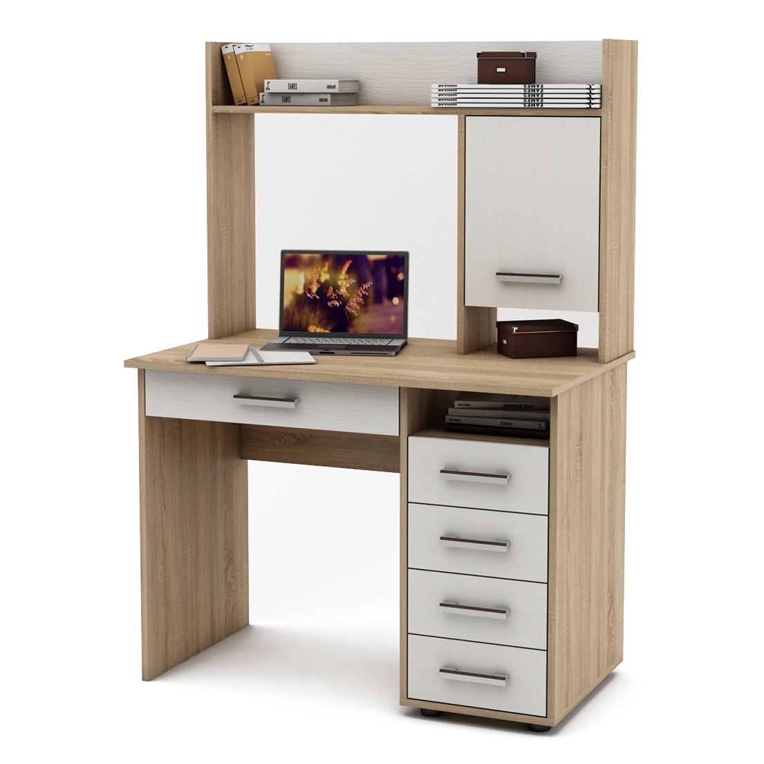 Компьютерный стол с шкафчиками: материал изготовления — пластик или дерево . . . угловой письменный стол с полками фото кс 20-30 . . . . стол с надстройкой и стол с ящичками .