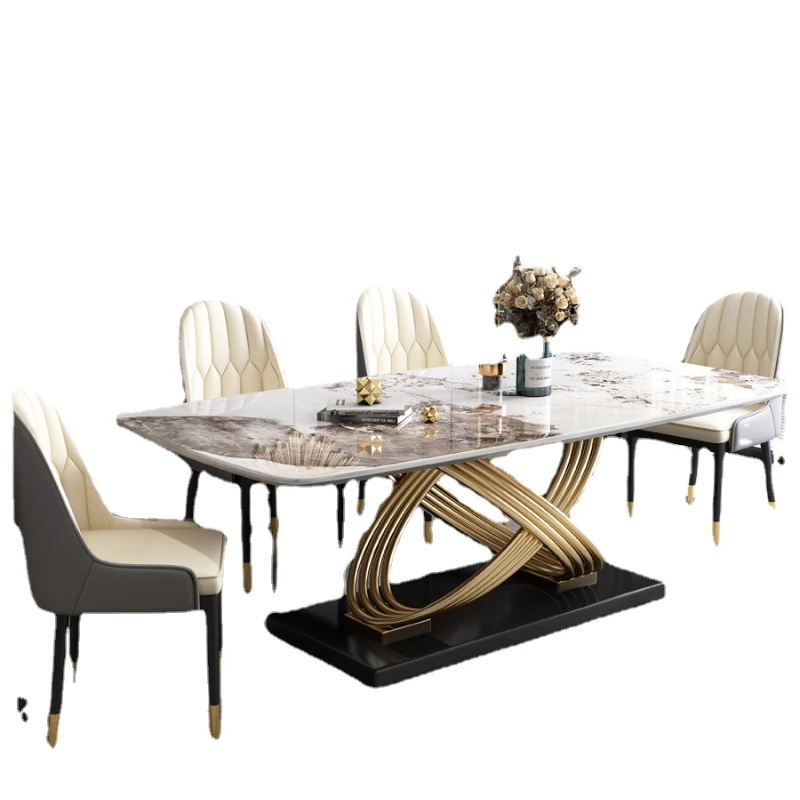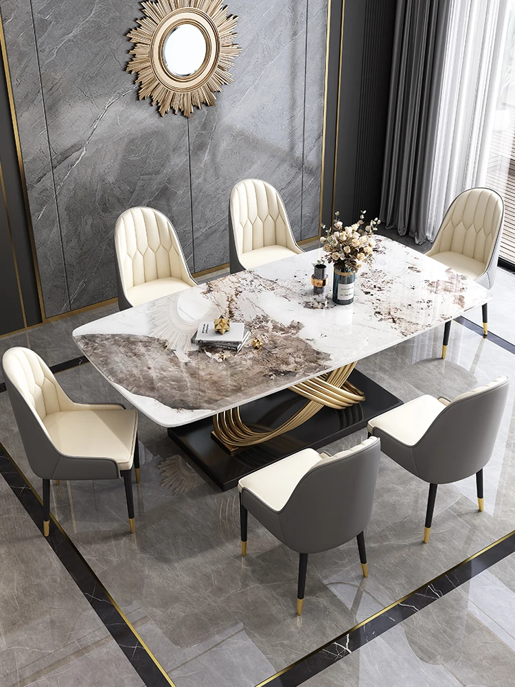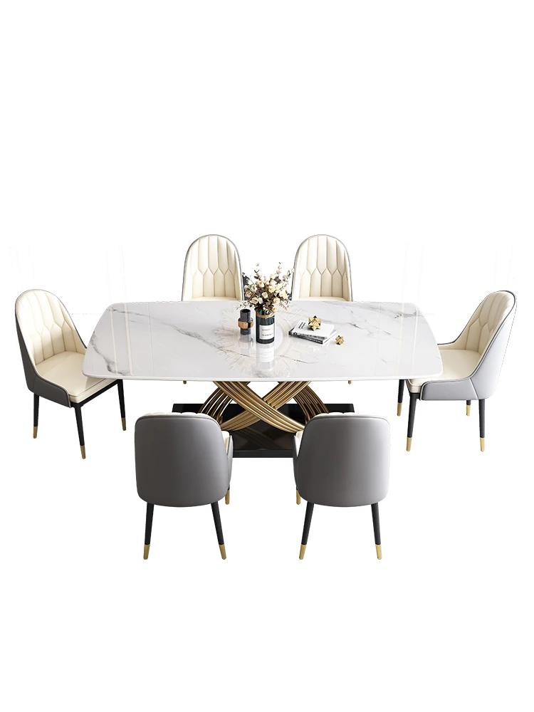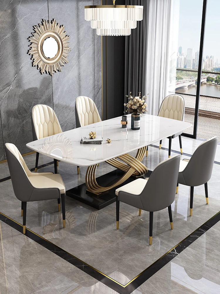 Stone Plate Dining Tables and Chairs Set Modern Simple Rectangular Home Dining Table Mild Luxury Marble Dining Table - Купить с бесплатной доставкой