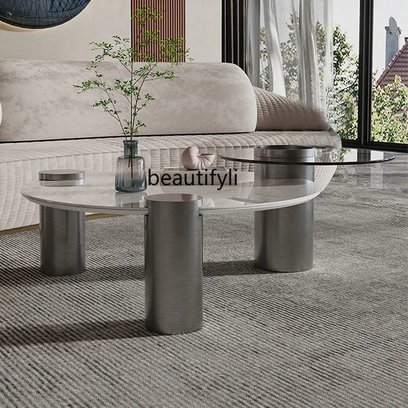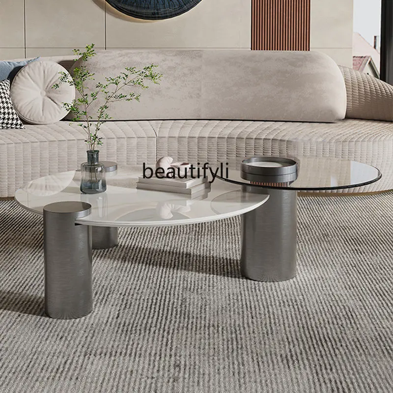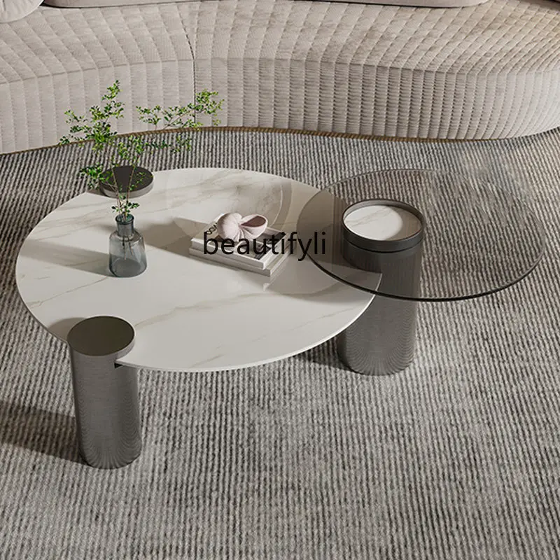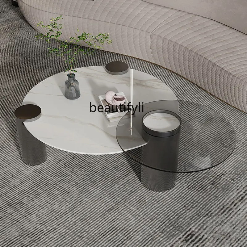 BPxExAnNHere you can buy Stone Plate round Coffee Table Combination Home Living Room Small Apartment Creative Design Simple Tempered Glass Side Table with free delivery to your post office.