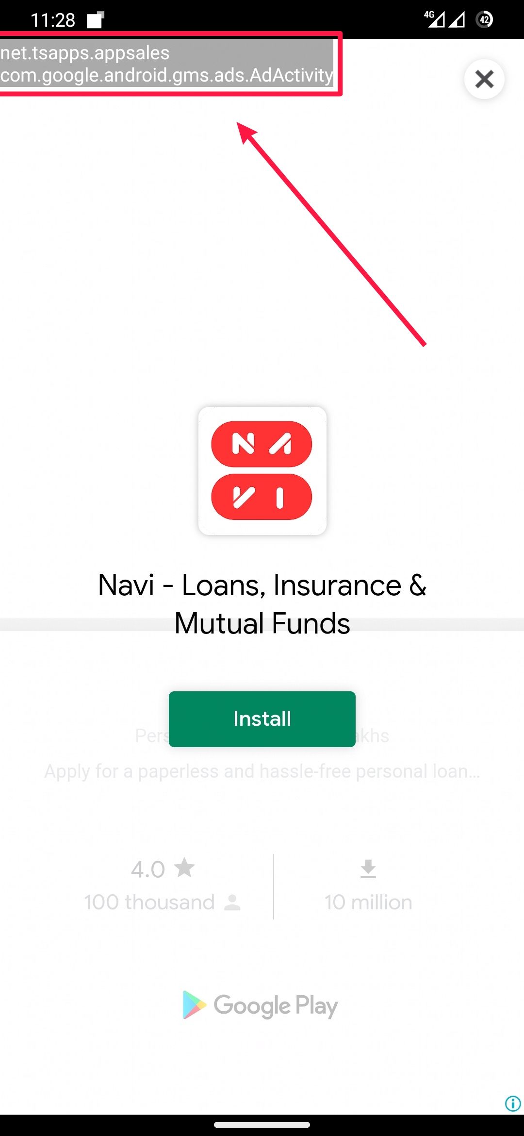 Current Activity ൽ കാണിക്കുന്ന package name ഗൂഗിൾ സെർച്ച്‌ വഴി കണ്ടുപിടിക്കാൻ കഴിഞ്ഞില്ലെങ്കിൽ, ഫോണിലെ apps ലിസ്റ്റ് എടുത്ത് അതിൽ name ഇല്ലാത്ത ഏതെങ്കിലും 3rd party app ഉണ്ടോ എന്നു നോക്കി അത് uninstall ചെയ്യുക.