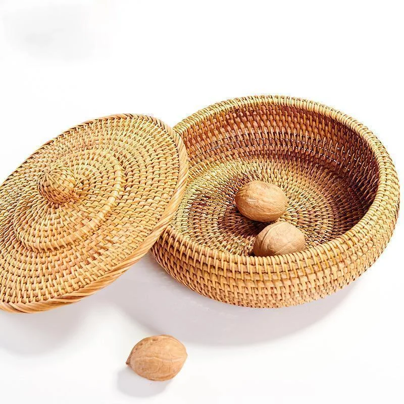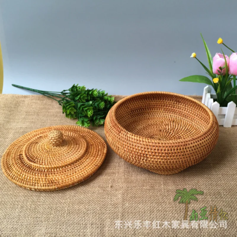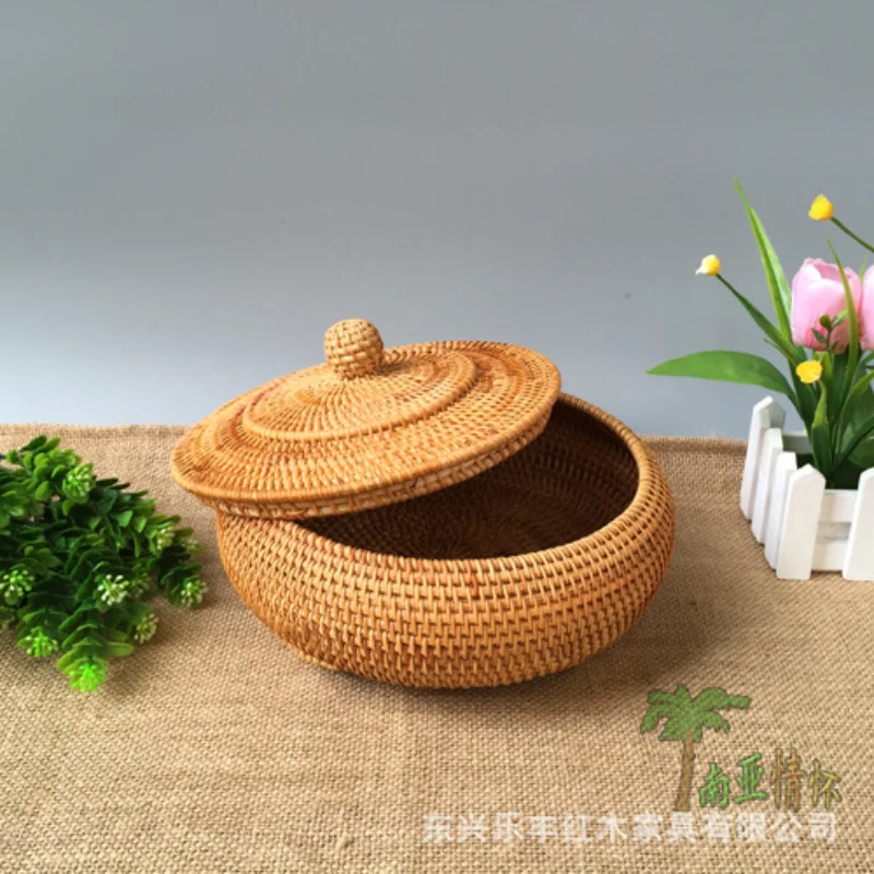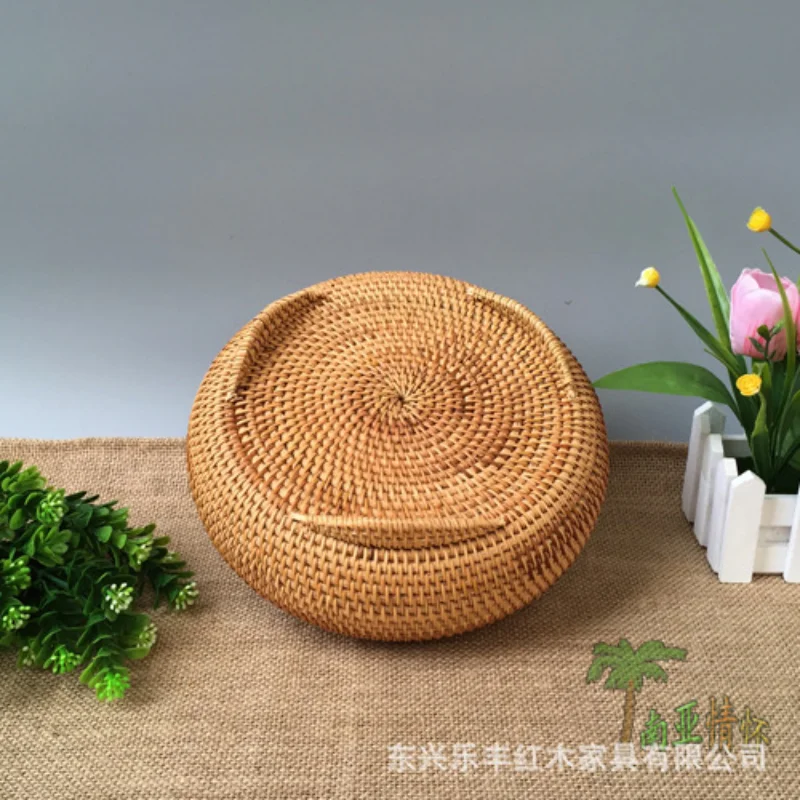 Storage Basket Hand-Woven Rattan Woven with Cover Round Primary Color Chinese Jewelry Snacks Tea Set Storage Box 22x13cm ZM1027 - Купить с бесплатной доставкой