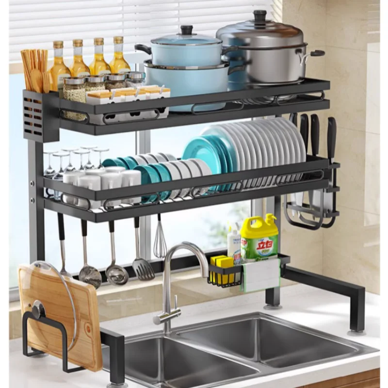 Storage Countertop 2 Tier Metal Kitchen Shelf Organizer Dish Drying Rack Over Sink Drain Rack Kitchen Utensils Holder Heavy duty - Купить с бесплатной доставкой