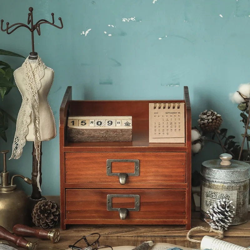 bHlaTUtrHere you can buy Storage Drawer Wood Retro Organizer Box Desktop Vanity Cosmetics Jewelry Storage System Multifunctional Desk File with free delivery to your post office.