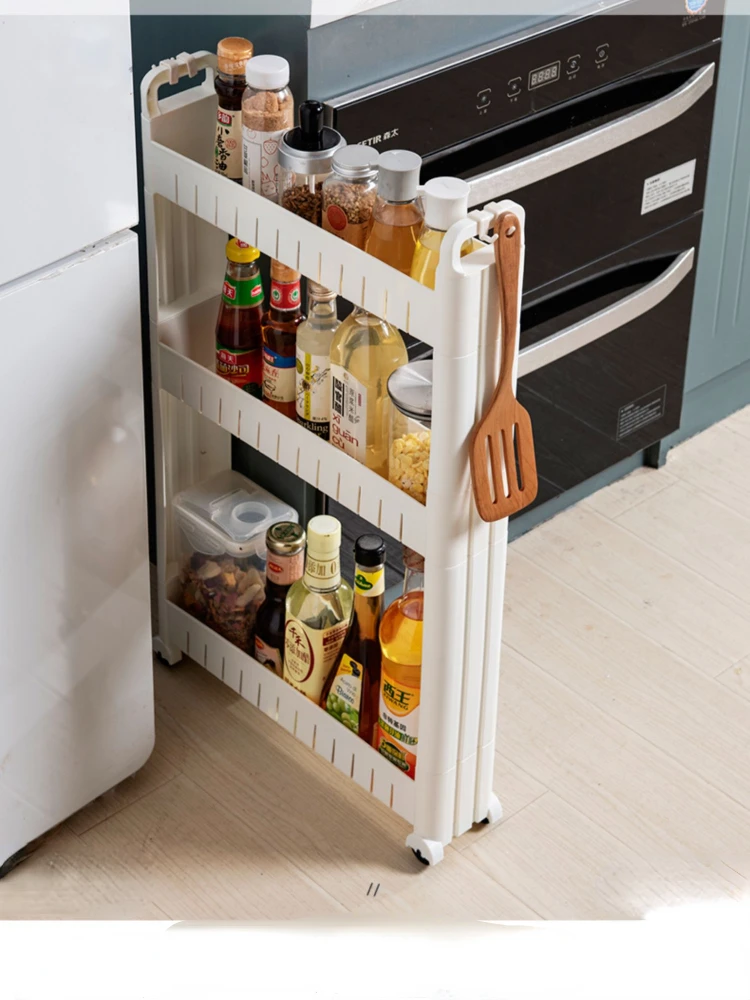 "Storage Rack White Plastic Kitchen Floor Multi-Layer Small Refrigerator Gap 10cm Wide Side Super Narrow Punch-Free Black Locker" * Buy Now With Free Shipping Just For $379