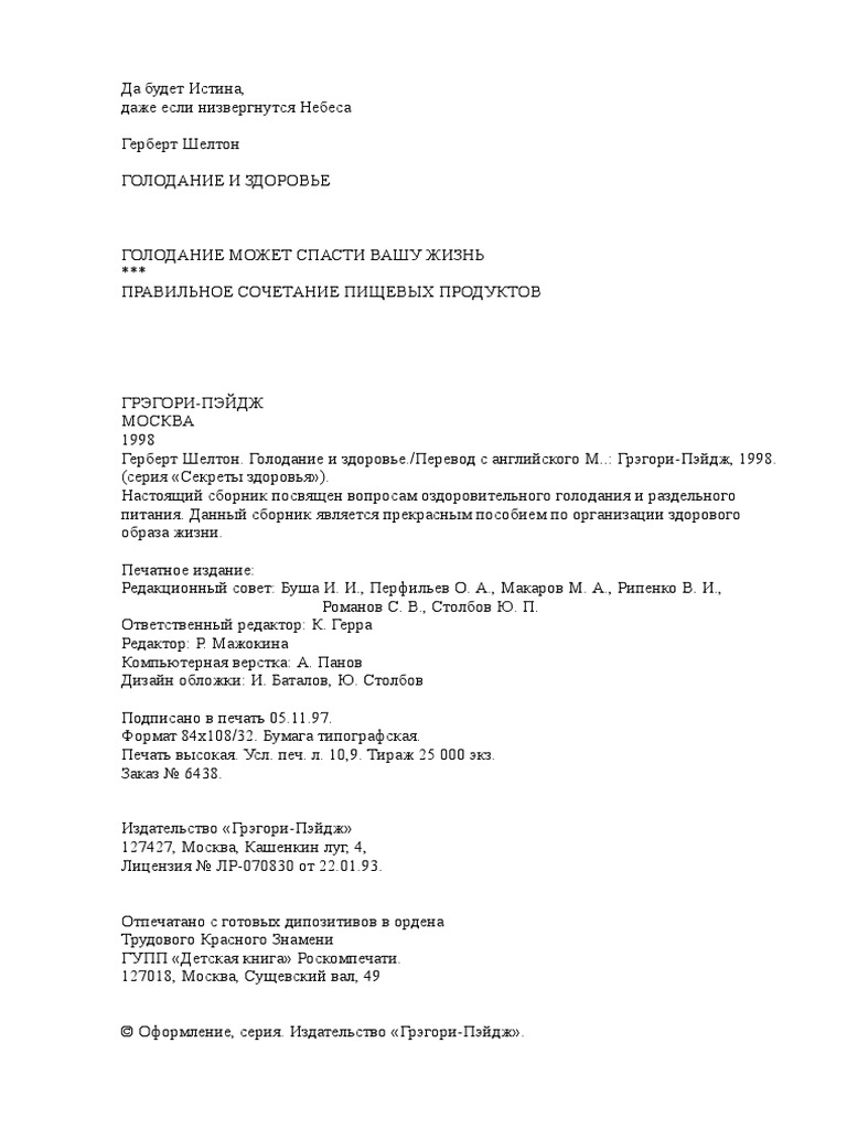 Голодание - не панацея . То, что голодание частенько представляют как панацею от всех хронических болезней, не соответствует действительности . Методики лечебного голодания применяются, к примеру, при лечении ожирения, но только в клиниках под постоянным . . .