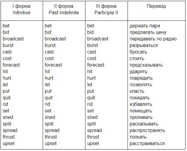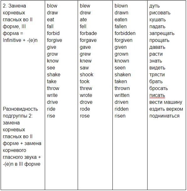 2 Группа. Совпадают II и III формы.