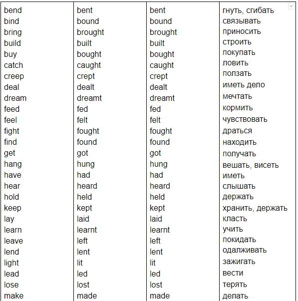 ЖБФПомню со школьных времён свои страдания, когда дали список неправильных глаголов, который нужно было выучить. Многократные попытки заучивания так и не увенчались успехом.