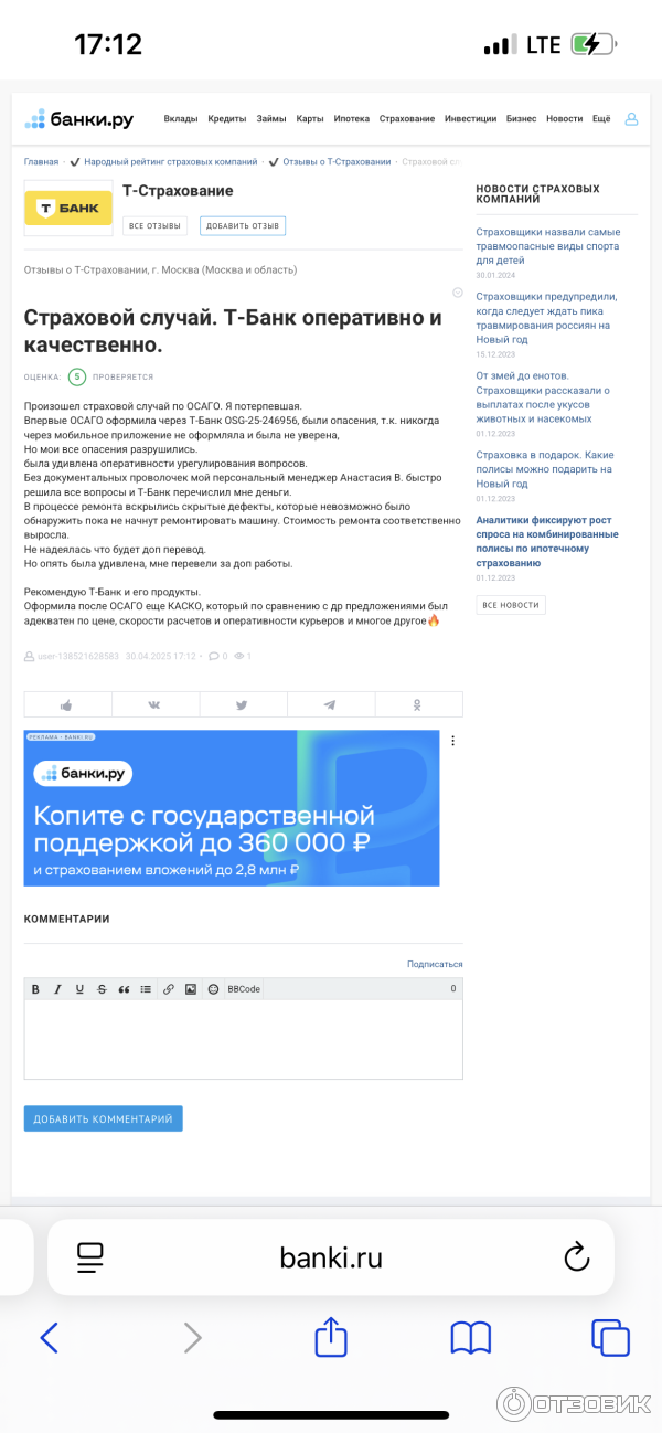 Страхование через тинькофф