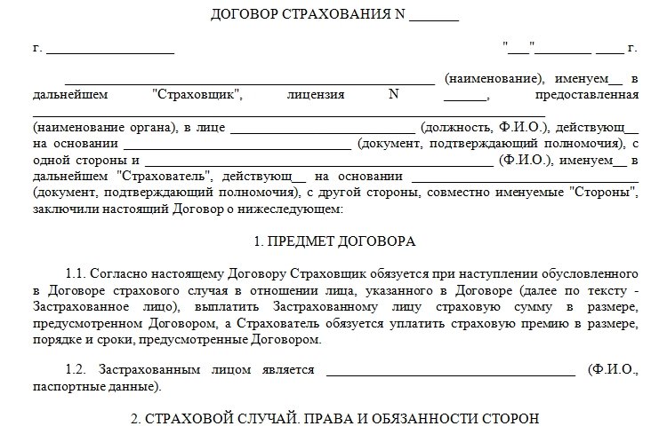 Страхование кредита бланк
