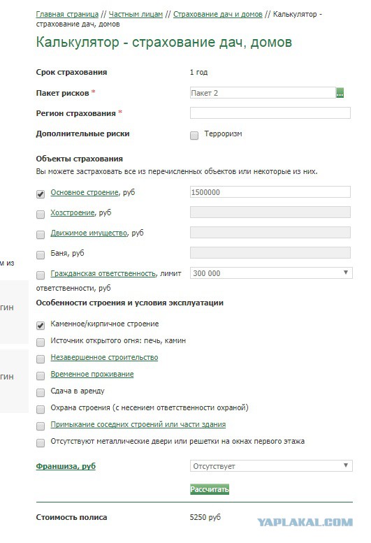Страхование жилья калькулятор