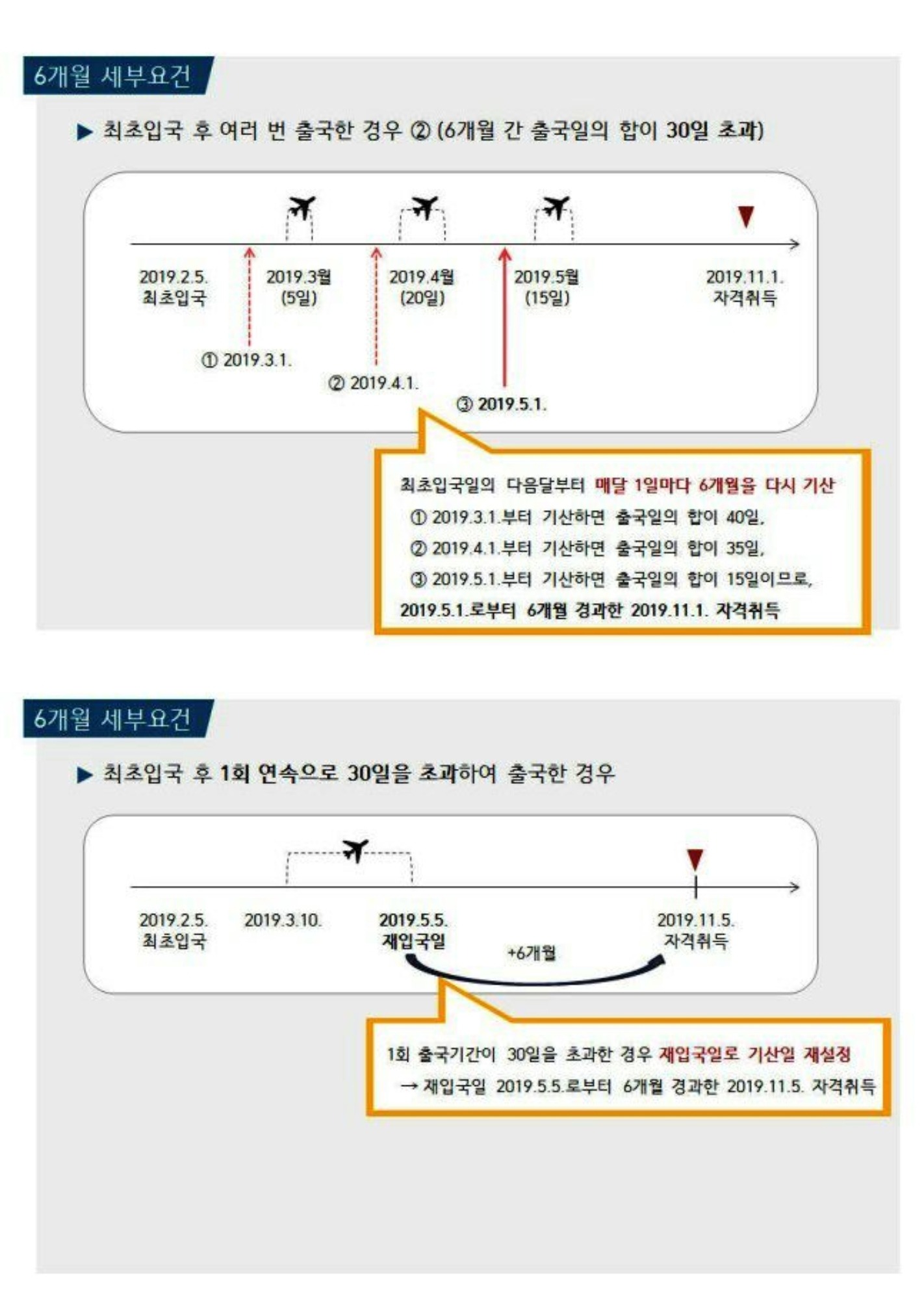 - Суммарное количество дней выезда из страны должно составлять 30 дней и менее в течение 6 месяцев