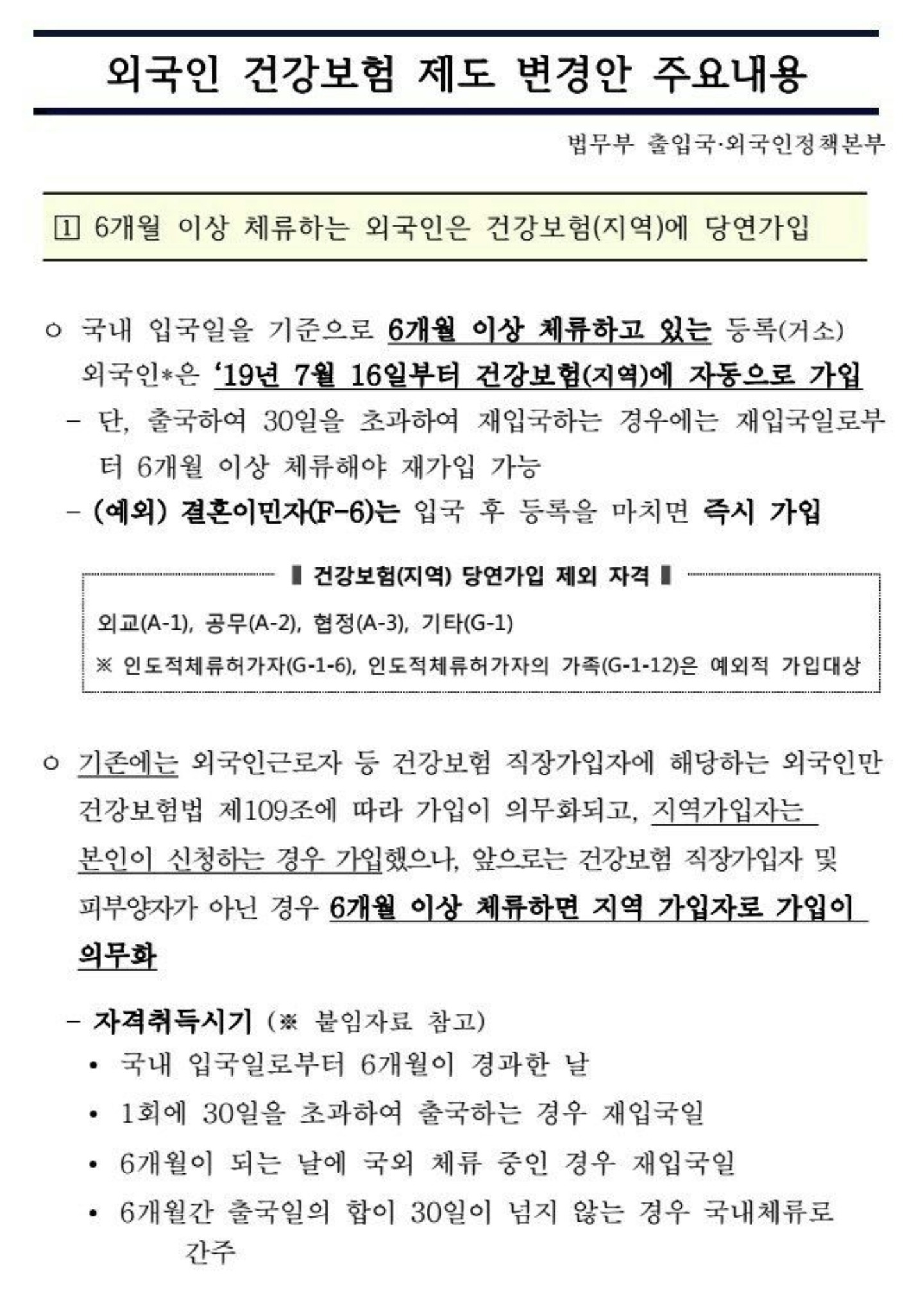 Автоматическая регистрация в системе медицинского страхования с 16 июля 2019 года для иностранцев со сроком пребывания в Республике Корея более 6 месяцев.