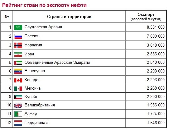 Страна крупный экспортер нефти