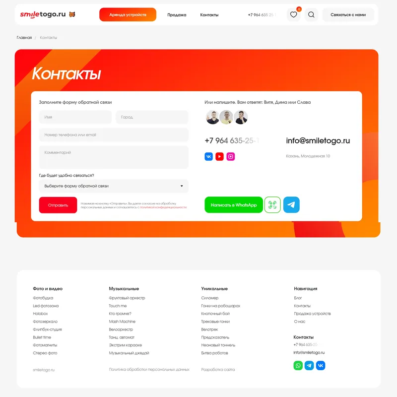 Страница контакты пример
